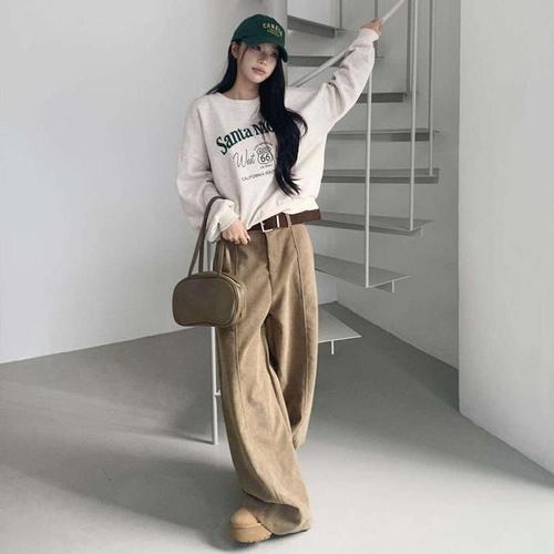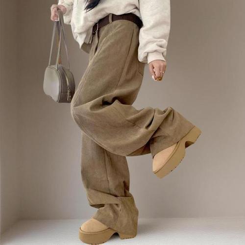 MS HOME 여성 코듀로이 와이드 팬츠 봄가을 기모 바지