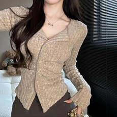 cammello 셔링 포인트 슬림핏 긴팔 골지 니트 크롭티 블라우스