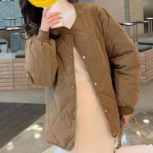 JUSTFEELING 1+1 깔깔이 솜패딩 자켓 중년여성 편하게 가을 겨울 보온 외출코트 순색 얇은 누빔패딩 코트 점퍼 M-4XL