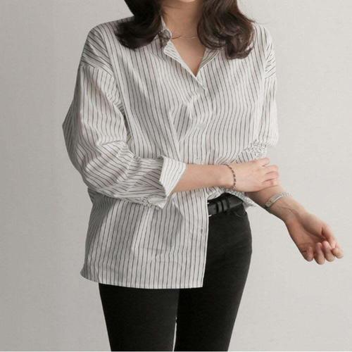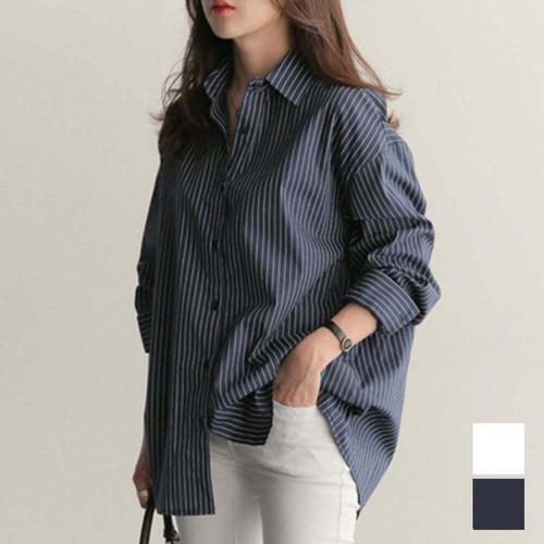 [오너클랜]인기상품 여성셔츠 여자 롱 기장 루즈핏 스트라이프 여성남방 셔츠 [WFJHJ4I_251110]