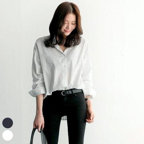 여성셔츠 여자 롱 기장 루즈핏 스트라이프 여성남방 셔츠
