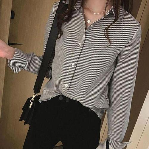 [셀러허브_여성트랜드패션]여성 스트라이프 여성블라우스 블라우스 블라우스 베이직 셔츠 여성남방 여성..