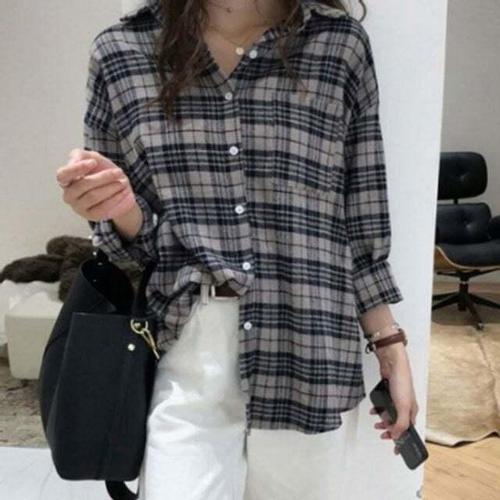 [오너클랜]인기상품 여성남방 가오리핏 여자 가을 셔츠 체크남방 데일리 회사원룩 [WFJHN57_251110]