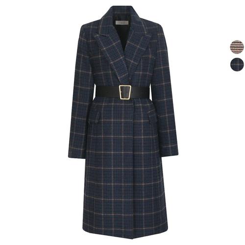 갤러리아_여성 겨울 누빔 체크 벨티드 롱코트