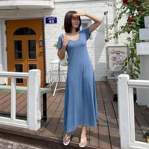[에이치플러스몰]여성 롱니트 셔츠 뷔스티에 여름 데님 롱 원피