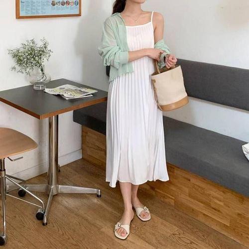 [에이치플러스몰]여름 셔츠 하객 여성 롱니트 캉캉 쉬폰 롱 로