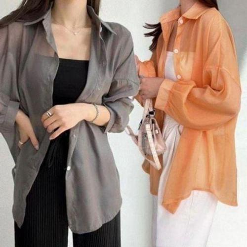 [에이치플러스몰]여성 여름 루즈핏 쉬폰 시스루 셔츠 블라우스 남방 레이어드블라우스
