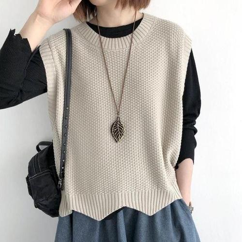 [에이치플러스몰]여자 뒷트임 시스루 짜임 레이어드 롱 조끼