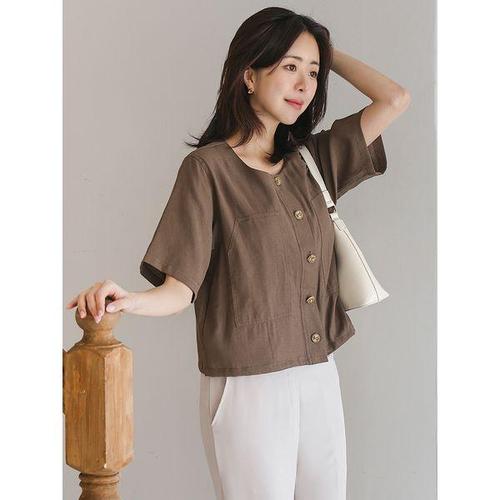 [다잇템]여성 반소매 면원단 마원단 주머니 베이직 자켓