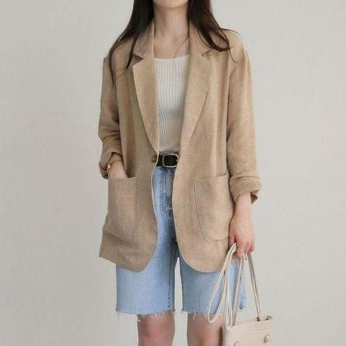 면마 정장 코트 캐주얼 정장상의 빅사이즈 여성 세미정장 린넨 아우터 자켓 가디건 정장자켓 재킷 코트 D99U