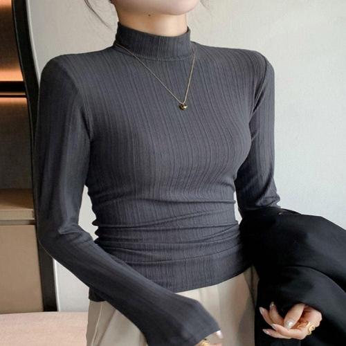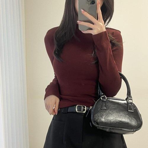 [옷자락]여자 어깨패드 속기모 목폴라 스판 슬림핏 티셔츠