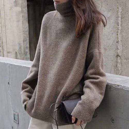 오스틱니 여자 겨울 부드럽고 편안한 캐시미어 터틀넥 보온 긴팔 니트티