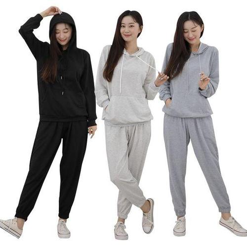 [에이치플러스몰]무지 후드 상하세트 여성 밴딩 트레이닝복 운동복