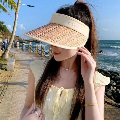 [셀러허브_여성트랜드패션]여성 밀짚무늬 챙 여름 컬라풀 햇빛 데일리 차단 썬캡
