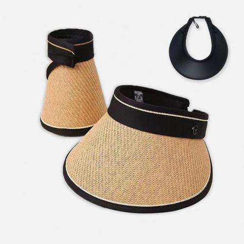 여성 여름 UV 차단 밀집 라탄 돌돌이 썬캡 모자 밀집모자 자외선차단모자 돌돌이모자 여성썬캡 여성여름모자