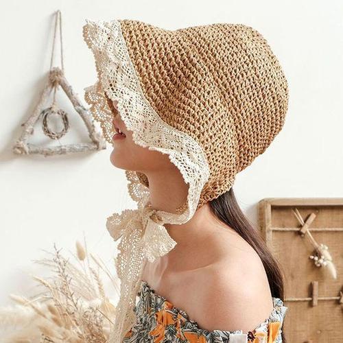 [에이치플러스몰]레이스 모자 햇빛차단 썬캡 밀짚모자 여자모자