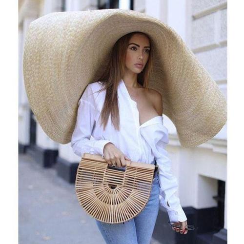 밀짚 비치 모자챙넓은 밀집 라탄 여성 여름 라피아햇