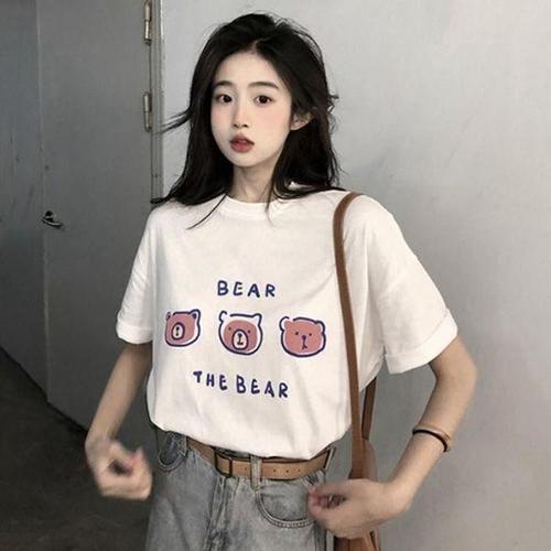 [에이치플러스몰]여자 오버핏 프린팅 유넥 반팔 티셔츠 박스티 5부 실켓 쿨 티셔츠 빅사이즈