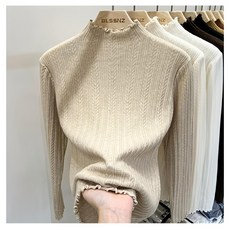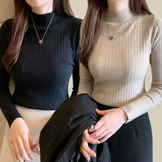 여성 부드러운 반목폴라 니트 티셔츠 간절지 데일리룩 반하이넥 골지티 나일론 여성복 데일리룩
