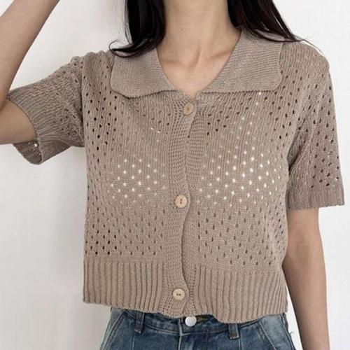 [에이치플러스몰]여자 인기 여성 니트 가디건 감성 티 카라 봄 여름 레