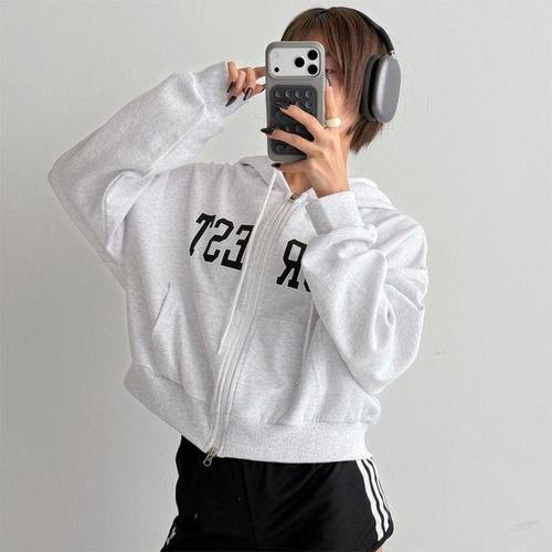[신상오픈런]여성 세미크롭 레터링 후드집업 봄 투웨이 포켓