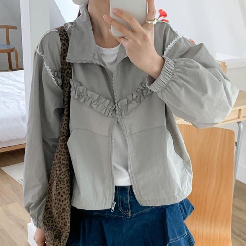 [옷자락]여자 러블리 프릴 레이스 바스락 바람막이 봄 집업 점퍼