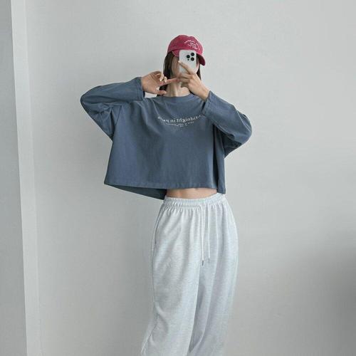 [미라클세븐]여성 레터링 크롭 티셔츠 박스핏 방송댄스용 라운드넥 봄티