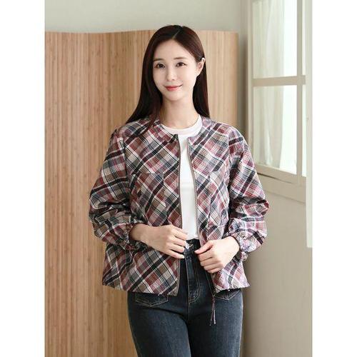 [드리다]여성 가을 체크 바스락 빅사이즈 바람막이 사파리 점퍼 40-50대 미시 중년여성 엄마옷 출근 모임