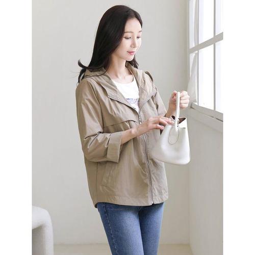 [드리다]여성 봄 여름 간절기 바스락 캐주얼 빅사이즈 후드 사파리 집업 점퍼 40-50대 미시 중년여성 엄..