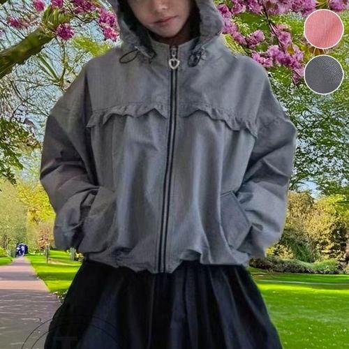 [애비뉴투지]엄마옷 비비드 후드 지퍼 주머니 여성 봄 여름 긴팔 스트링 캐쥬얼 숏 점퍼 J05525