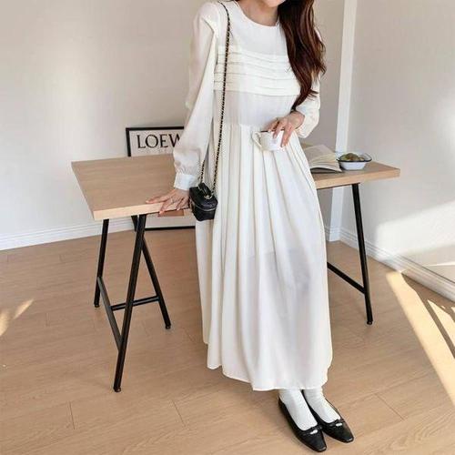 미니멈 세이브존01 라운드넥 플리츠 쉬폰 롱 원피스 MXBAWO4110