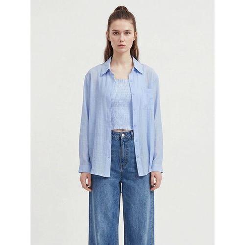 [샵앤]여성 여름 끈나시 스모킹 탑 반시스루 블라우스 세트 SHA-WSET-21161-블루