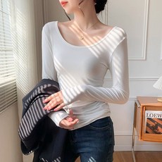 여성 스판슬림핏 딥유넥 라운드 긴팔티셔츠 부드러운 얇은 이너티