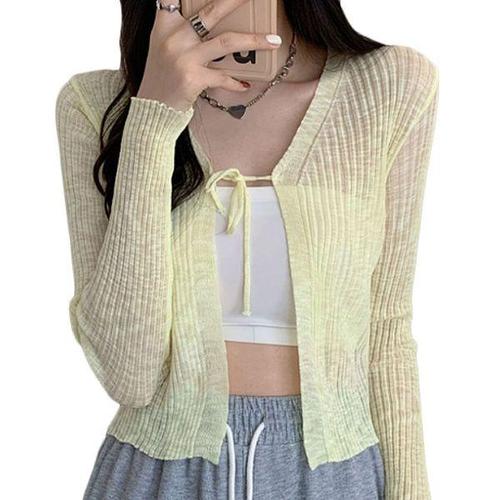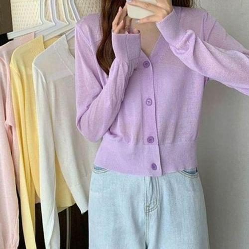 리치언니 여성용 심플한 패션코디 가벼운 통기성 좋은 고급스러운 여름 얇은 브이넥 긴팔 니트 가디건