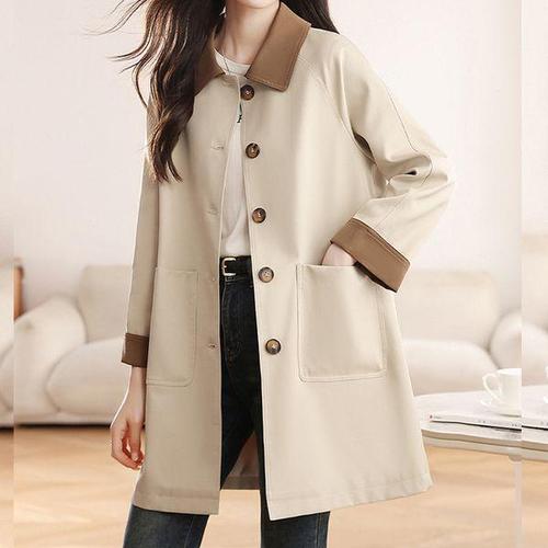 신상 스탠드 칼라 여성 코트 긴 소매 싱글 브레스티드 포켓 루즈핏 여성 재킷 2025 가을 패션 출퇴근 여성 아우터