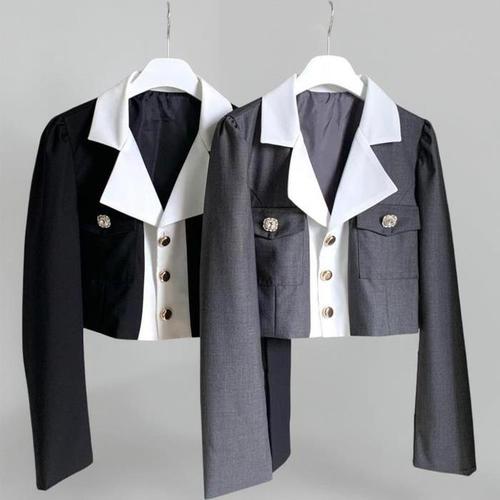 [신상오픈런]여자 하객룩 배색카라 투포켓 슬림핏 크롭 가을 자켓 (40723913)