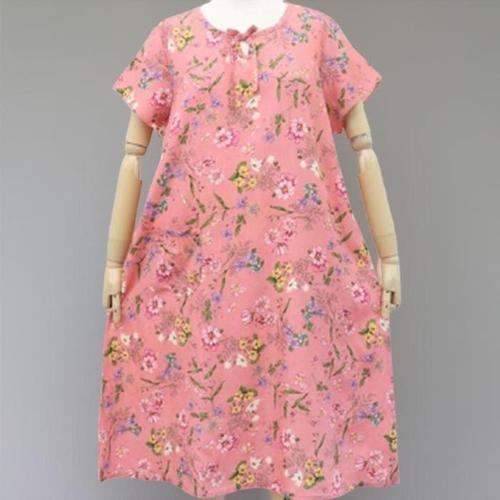 [신상오픈런]여성용 여름 인견 꽃 패턴 반팔 롱 드레스 홈웨어 잠옷 (38284192)