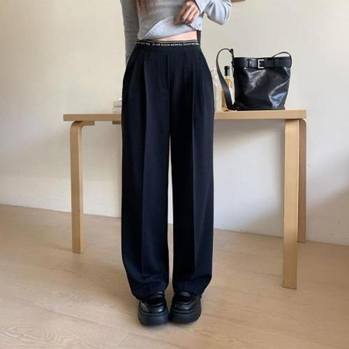 고품질 드레이프의 여성 정장 바지, 블랙/그레이 색상의 스트레이트 레그 캐주얼 스타일, 슬림핏과 편안함을 겸비한 넓은 다리 버전