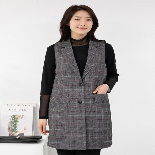 [모슬린]엄마옷 체크 테일러 카라 정장조끼 515FGH652 마담/중년여성/빅사이즈/50대/60대