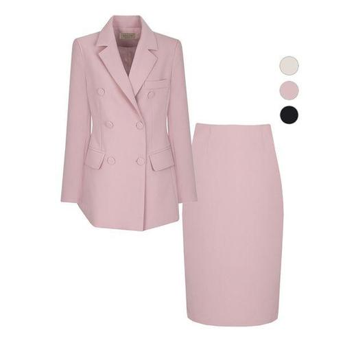 [비비드시크릿가너]SET 여성 온느 봄가을 더블 정장자켓+미디스커트 세트