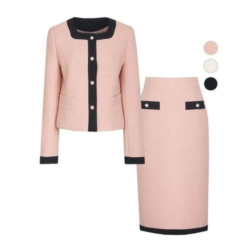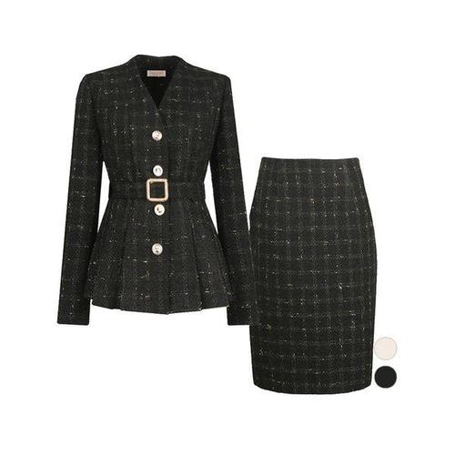 [비비드시크릿가너]SET 여성 겨울 모던 트위드 정장자켓+스커트 세트