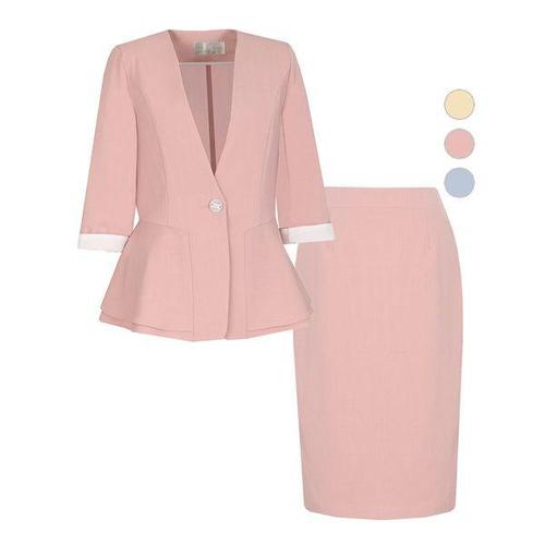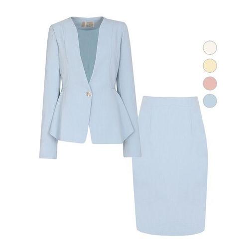 [비비드시크릿가너]SET 여성 파스텔 봄가을 페플럼 정장자켓+스커트 세트
