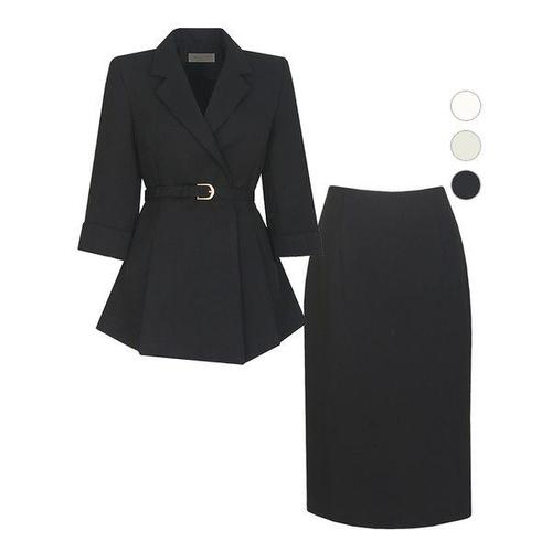 [비비드시크릿가너]SET 여성 여름 벨티드 7부 정장 자켓+스커트 세트
