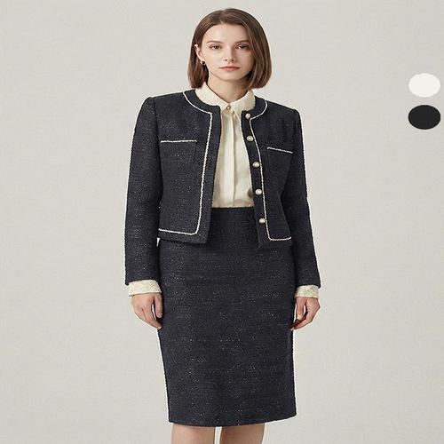 SET 여성 모던 노카라 겨울정장자켓+스커트 세트
