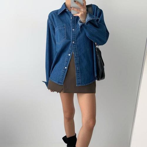 [오너클랜]인기상품 데님셔츠 여성 남방 루즈핏 긴팔 셔츠 데님 진청 청 [WFJGLN3_251108]