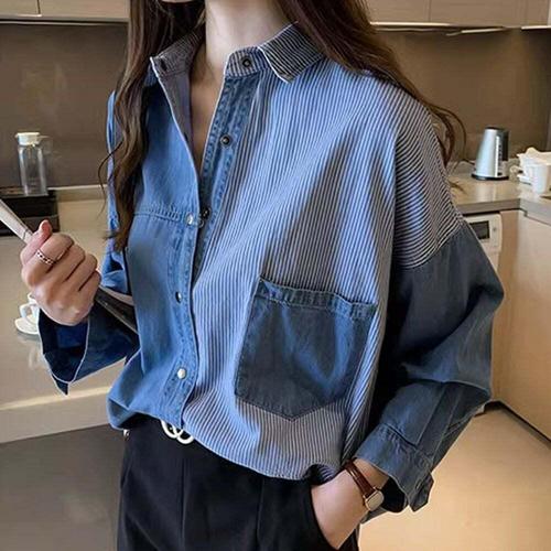 [셀럽하우스]여자 CXTV5532 긴팔 캐주얼 셔츠 루즈핏 청 봄 남방