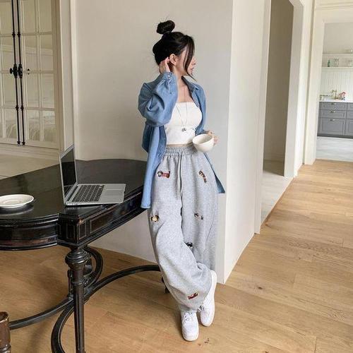[옷자락] 여성 봄철 간절기 루즈핏 곰 자수 청셔츠