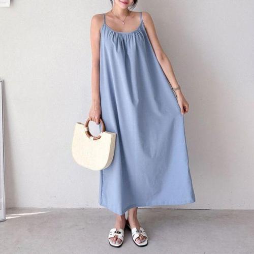 [에이치플러스몰]루즈핏 편안한 쿨 민소매 나시 롱 원피스