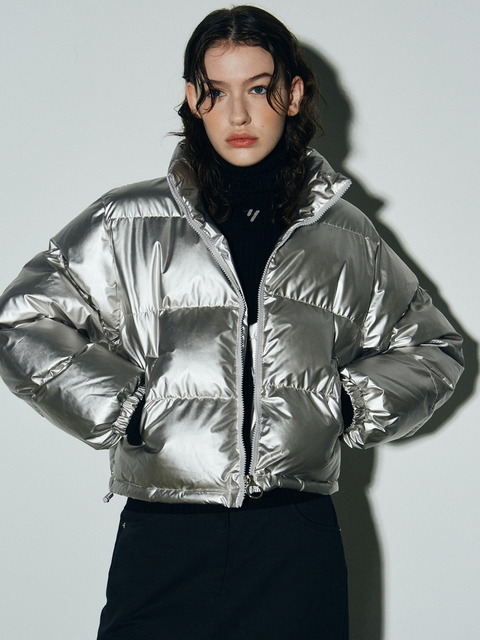 [닉앤니콜] 글로시 크롭 푸퍼 패딩_실버
