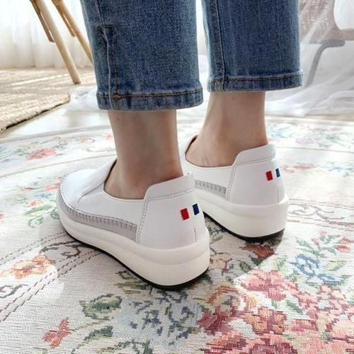 [킨즈]여성 가죽 펀칭 슬립온 발편한 통굽 신발 여름 키높이 둥근 앞코 단화 스니커즈